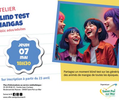LIREPartagez un moment blind test sur les génériques des animés de mangas de toutes les époques. Le jeudi 7 mai à 18h30 à la médiathèque Émile Zola Public