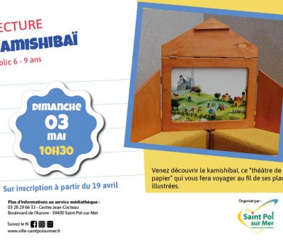 LIREVenez découvrir le kamishibaï, ce “théâtre de papier” qui vous fera voyager au fil de ses planches illustrées. Le dimanche 03 mai 10h30 à la médiathèq