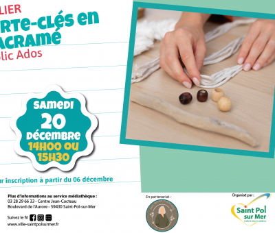 Créez votre porte-clés grâce à la technique de tissage du macramé. Emportez-le partout avec vous ou offrez-le à votre personne préférée ! Le samedi 20