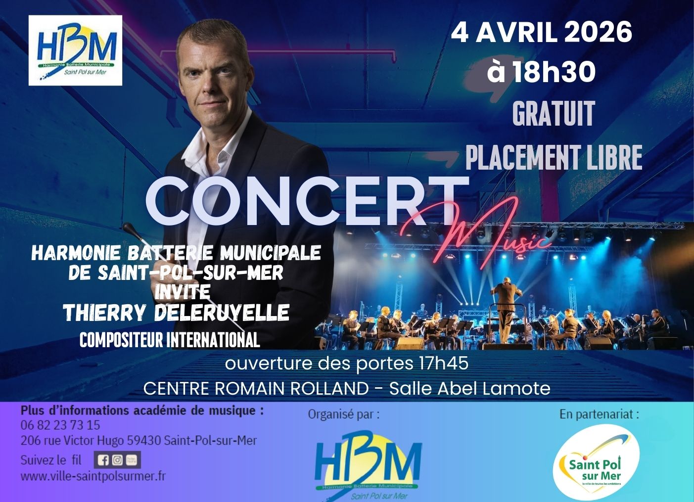 Le prochain concert de l’harmonie batterie municipale se tiendra le samedi 4 avril 2026.